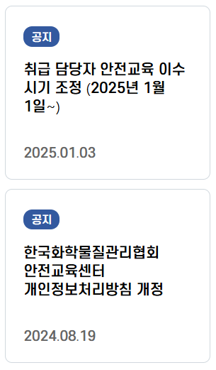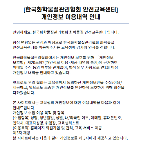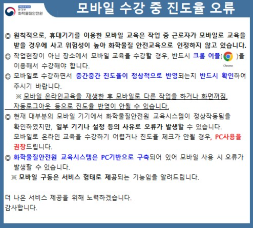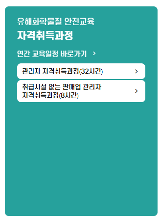 - 유해화학물질 안전교육센터에서 온라인 수강 가능