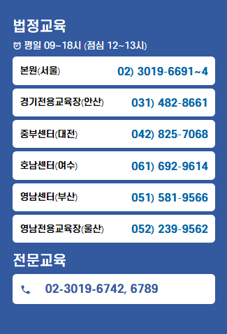 기존에는 오프라인 위주로 진행되었지만, 코로나19 이후 온라인 교육의 비중이 커지며 접근성이 향상되었고, 지금은 거의 대부분의 기초 및 보수교육을 온라인으로 수강할 수 있습니다.