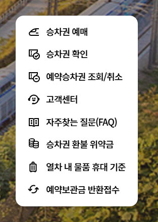 - 열차운행정보 문자 예약: 지연 안내 문자 수신 설정 가능 (무료)