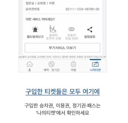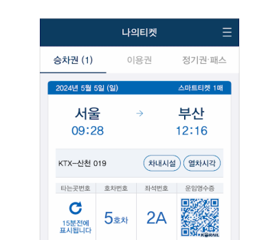 - QR 티켓 출력 없이 바로 탑승 가능, KTX, ITX 모두 적용