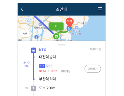 서울에서 부산으로 가는 도중, 대전에서 식사 후 다음 열차 타는 식으로 중간 경유지를 포함한 다구간 예약이 가능
