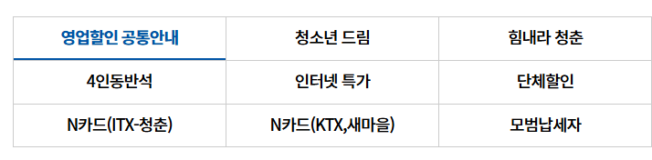 - 정기권/내일로권 신청: 홈페이지에서만 결제, 사용 가능