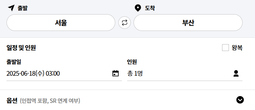 왕복 예매보다 출발, 도착 각각 따로 예매하면 좌석 확보 확률이 높아집니다. 특히 단체 이동 시엔 한 명씩 따로 예약한 후 자리 병합 신청을 하기도 합니다.