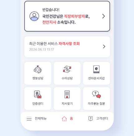 - 국민건강보험공단과 연동되며, 등록 상태 확인 가능