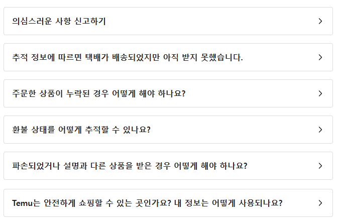 ➡ 테무 앱 → 주문 상세보기 → '문제 신고' 클릭 → 배송 지연 신고