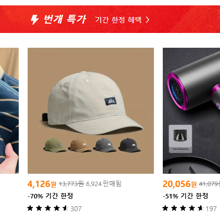 - 동일 상품이 쿠팡, 11번가 등에서 1만 원 이상인데, 테무에서는 3~4천 원대인 경우가 많음
