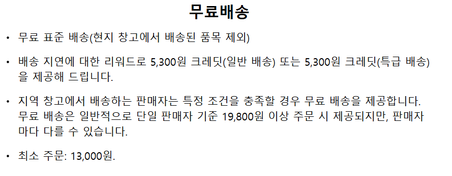 - 단, 배송비 무료 조건을 충족하기 위한 불필요한 소액 추가 구매 유도에 주의