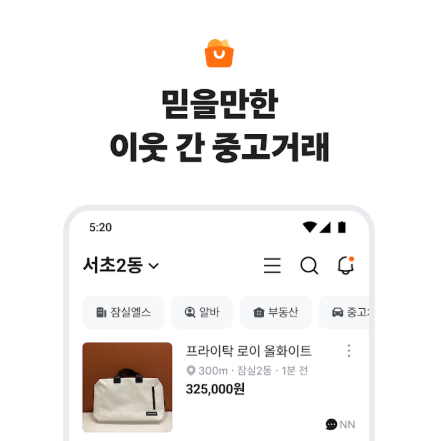 중고 거래부터 동네 정보까지, 이웃과 함께해요. 가깝고 따뜻한 당신의 근처를 만들어요.